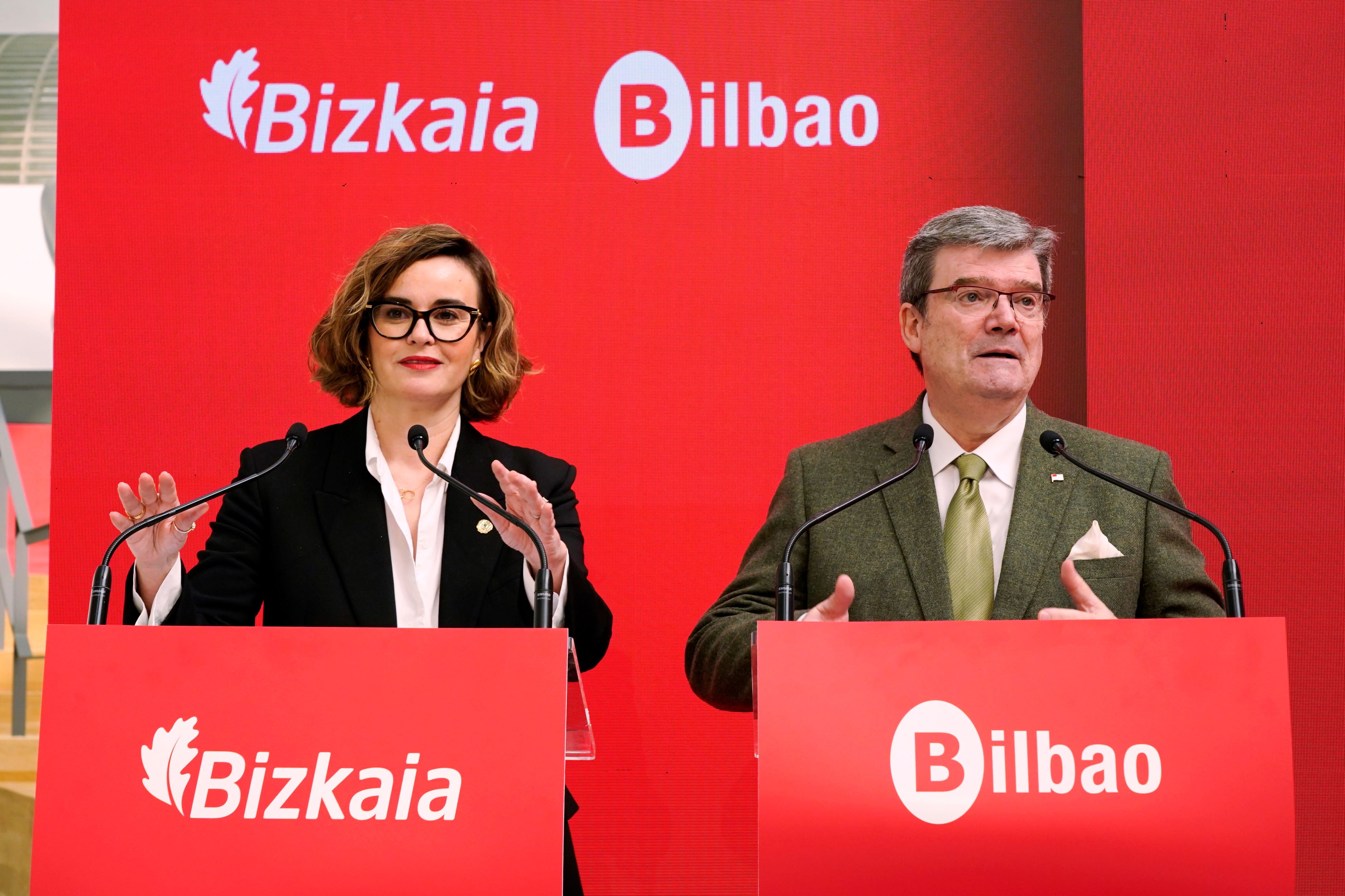 La Diputada general de Bizkaia, Elixabete Etxanobe, y el Alcalde de Bilbao, Juan Mari Aburto, han presentado hoy tanto la estrategia audiovisual para impulsar en el Territorio la actividad económica y el empleo de esta industria, como los datos de actividad – rodajes, desarrollo económico y cultural- en 2024 y 2025.