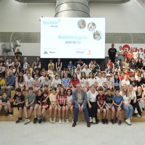 La segunda edición del ‘Bizilabe Eguna’ de Bilbao ha contado con la participación de cerca de 100 jóvenes bilbainos, que han presentado sus 30 proyectos científicos y tecnológicos en el céntrico Edificio Ensanche. Además de familiares de la juventud participante, representantes del Ayuntamiento de Bilbao, como entidad promotora del proyecto Bizilabe de Bilbao, y Aitziber Lasa, coordinadora de Educación STEAM de Elhuyar, han estado presentes para conocer de cerca los resultados de las innovadoras ideas de la juventud en este fin de curso escolar.