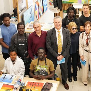 Kontxi Claverrek, Bilboko Udaleko Ekonomiaren Garapeneko, Merkataritzako, Turismoko eta Enpleguko Saileko zinegotziak, Bilboko elkartearen egoitza bisitatu dute, arte inklusiboa sustatzeko asmoz antolatzen dituzten tailerrak gertutik ezagutzeko.
