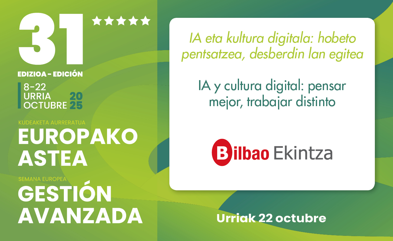 Bilbao Ekintzak, Bilboko Udalaren elkarteak, Enpresa-Jardunaldi berri batera gonbidatzen zaitu datorren urriaren 22an, 09:00etatik 10:30era. Jardunaldia Euskalitek antolatzen duen Kudeaketa Aurreratuaren Europako 31. Astearen barruan burutuko da.