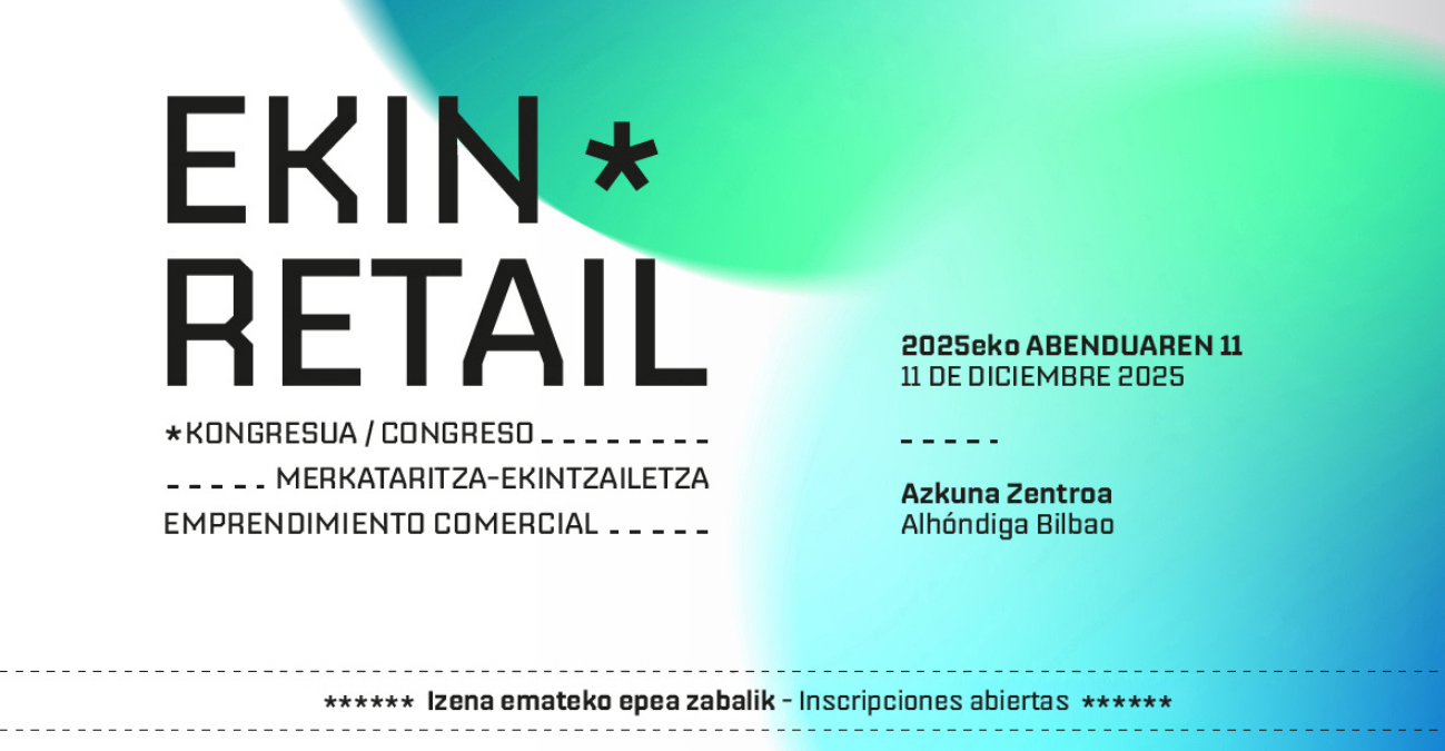 Descubre el futuro del comercio en Euskadi en el I Congreso de Emprendimiento Comercial, el 11 de diciembre de 2025 en Azkuna Zentroa (Bilbao). Un evento pionero que reunirá a personas emprendedoras, comercios y profesionales referentes de distintos ámbitos para compartir experiencias inspiradoras sobre innovación, sostenibilidad y modelos de negocio tradicionales y disruptivos.